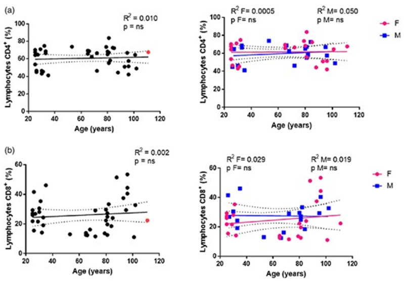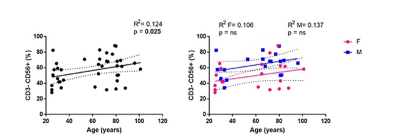 研究团队对西西里岛214名不同年龄段的健康个体进行了深入研究,年龄范围从22岁到111岁不等。研究团队通过流式细胞术,精确分析了这些个体血液中T细胞和NK细胞亚群的百分比变化,并探讨了这些变化与年龄和性别的关系。