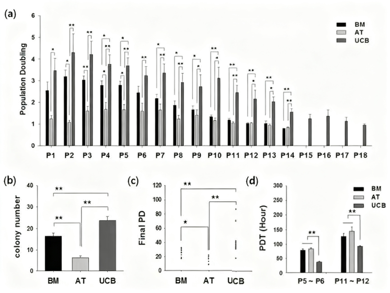 一项体外对比研究显示,脐带间充质干细胞(UC-MSCs)的衰老速度明显慢于骨髓来源干细胞,且具有更高的增殖速率。